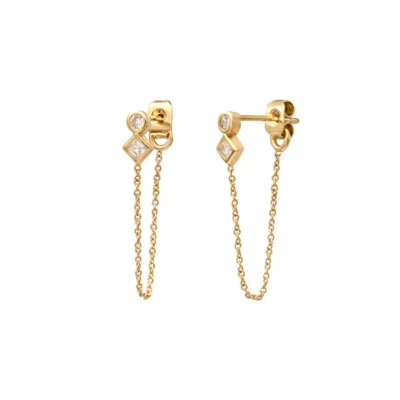 Paire de boucles d’oreilles chaînes dorées à l’or fin avec strass Swarovski cristal