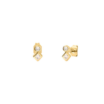 Paire de boucles d’oreilles puces dorées à l’or fin avec strass Swarovski cristal