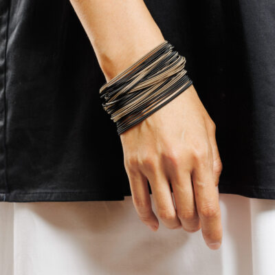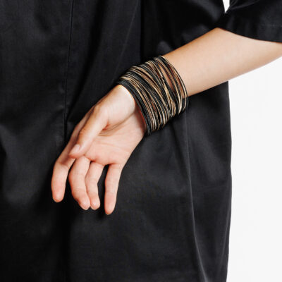 Un bracelet iconique parmi nos collections qui se mélange avec d’autres bracelets sans aucune peine, apportant matière et couleur sur le poignet.