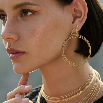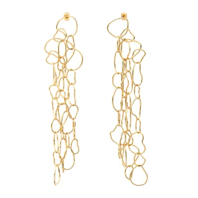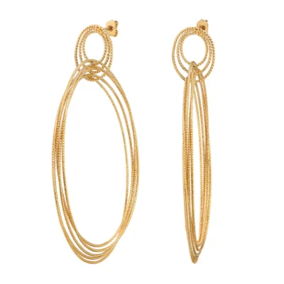 Paire de boucles d’oreilles chaînes dorées à l’or fin avec strass Swarovski cristal