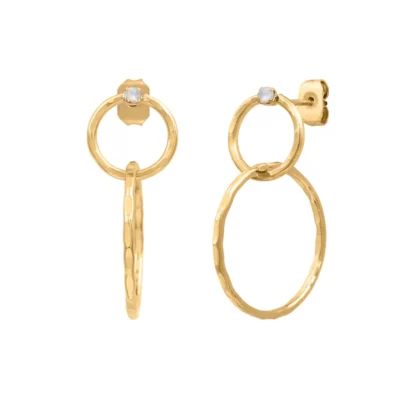 Paire de boucles d’oreilles puces dépareillées dorées à l’or fin, avec strass Swarovski