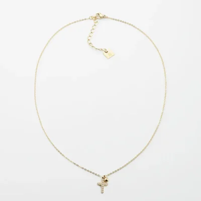 Collier chaîne en acier uni ou doré à l’or fin par ionisation. Le pendentif petite croix flirte délicatement sur la chaîne avec un petit zirconium en serti clos.