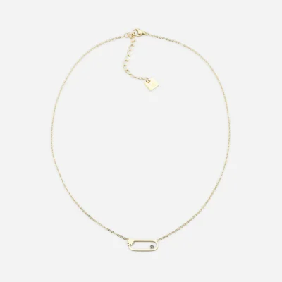 Collier en acier uni ou doré à l’or fin par ionisation, sur lequel sont serti des motifs ovales en acier et en zirconiums.