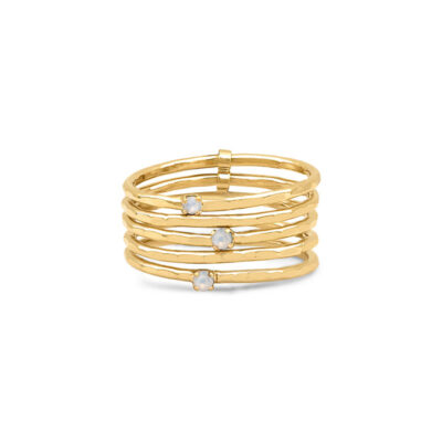 Bracelet en acier doré à l’or fin par ionisation sur lequel des zirconiums se succèdent avec un sertissage carré. Deux anneaux sont également sertis sur le bracelet.