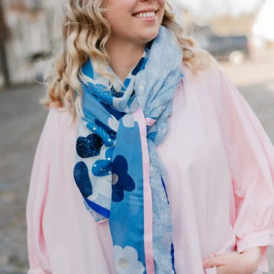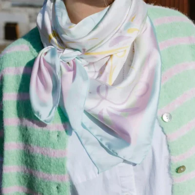 80,00€Le foulard Shanna est un assemblage de 4 morceaux de tissus différents, agrémenté de rubans décoratifs et assortis.
