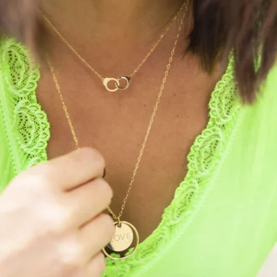 35,00€Collier chaîne en acier uni ou doré à l’or fin par ionisation, sur lequel un motif de menotte est finement accrochée.