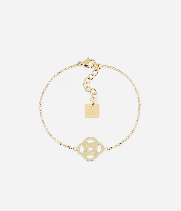 Bracelet en acier uni ou doré à l’or fin avec un empiècement en forme fleur aztèque.