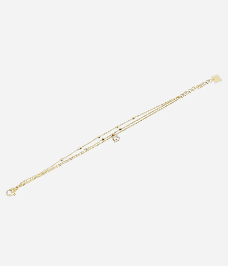 Bracelet triple chaîne en acier uni ou doré à l’or fin par ionisation sur laquelle est accroché un zirconium.