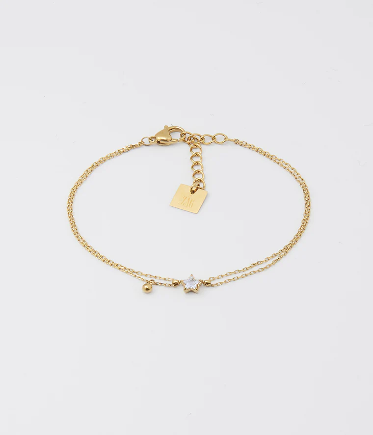 Bracelet en acier uni ou doré à l’or fin. Ce bracelet est est serti d’une étoile en zirconium et d’un zirconium simple.