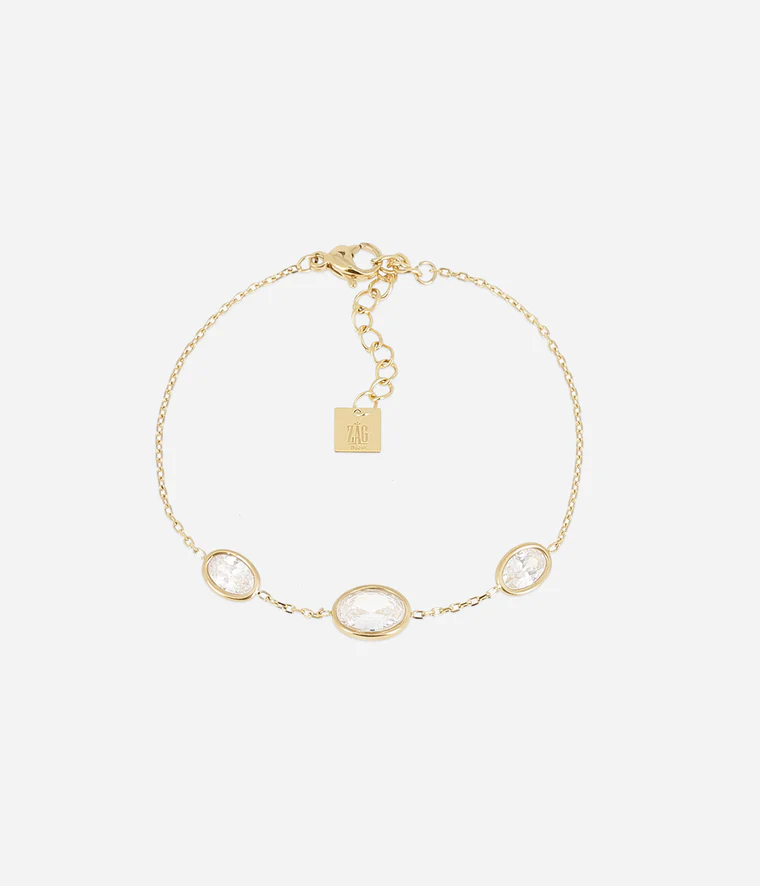 Bracelet en acier uni ou doré à l’or fin par ionisation serti de 3 zirconiums ovales.