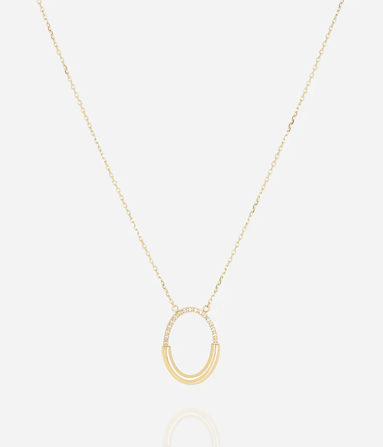 59,00€Collier en acier uni ou doré à l’or fin par ionisation, sur lequel sont serti des motifs ovales en acier et en zirconiums.