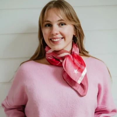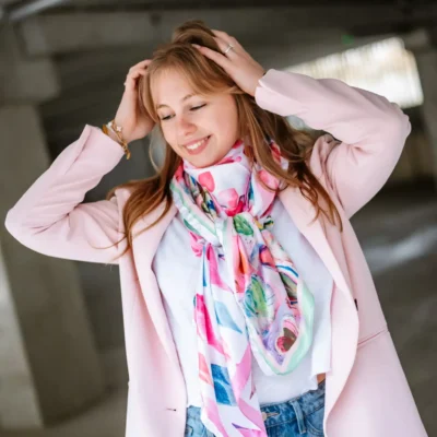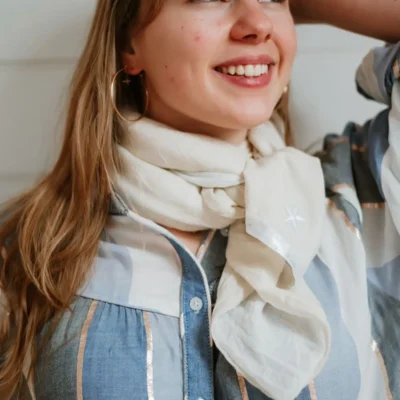 80,00€Le foulard “soie” Shanna est un assemblage de 4 morceaux de tissus différents, agrémenté de rubans décoratifs et assortis. Le carré soie Shanna Printemps/été 2026 est léger, et agréable à porter. Il vous accompagnera en début de saison pour apporter couleurs et luminosité à vos tenues et il vous tiendra chaud les soirées d’été.