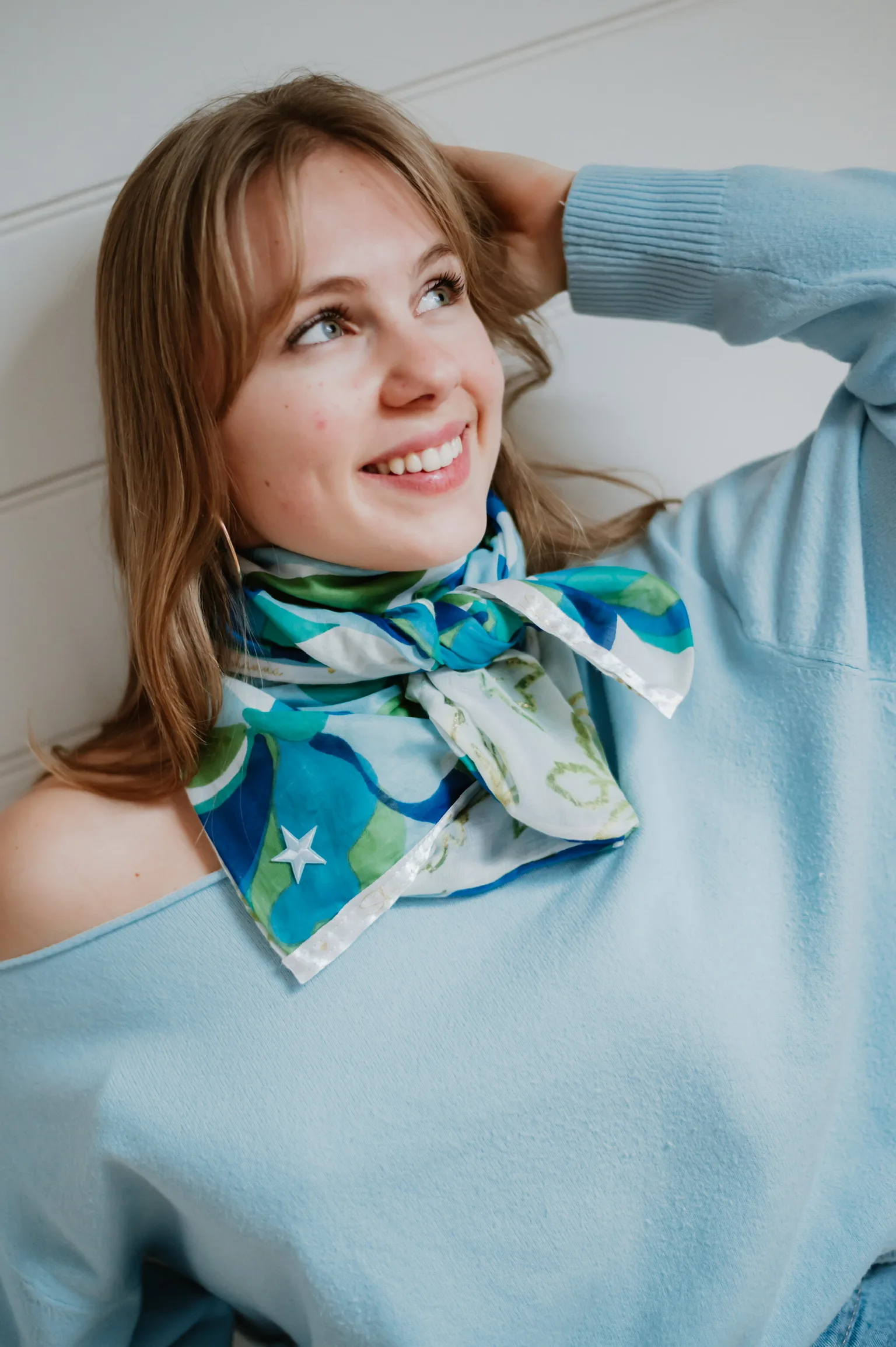 Couleurs : Bleu, turquoise, ciel, pomme, ruban blanc/doré et étoile bleu ciel.