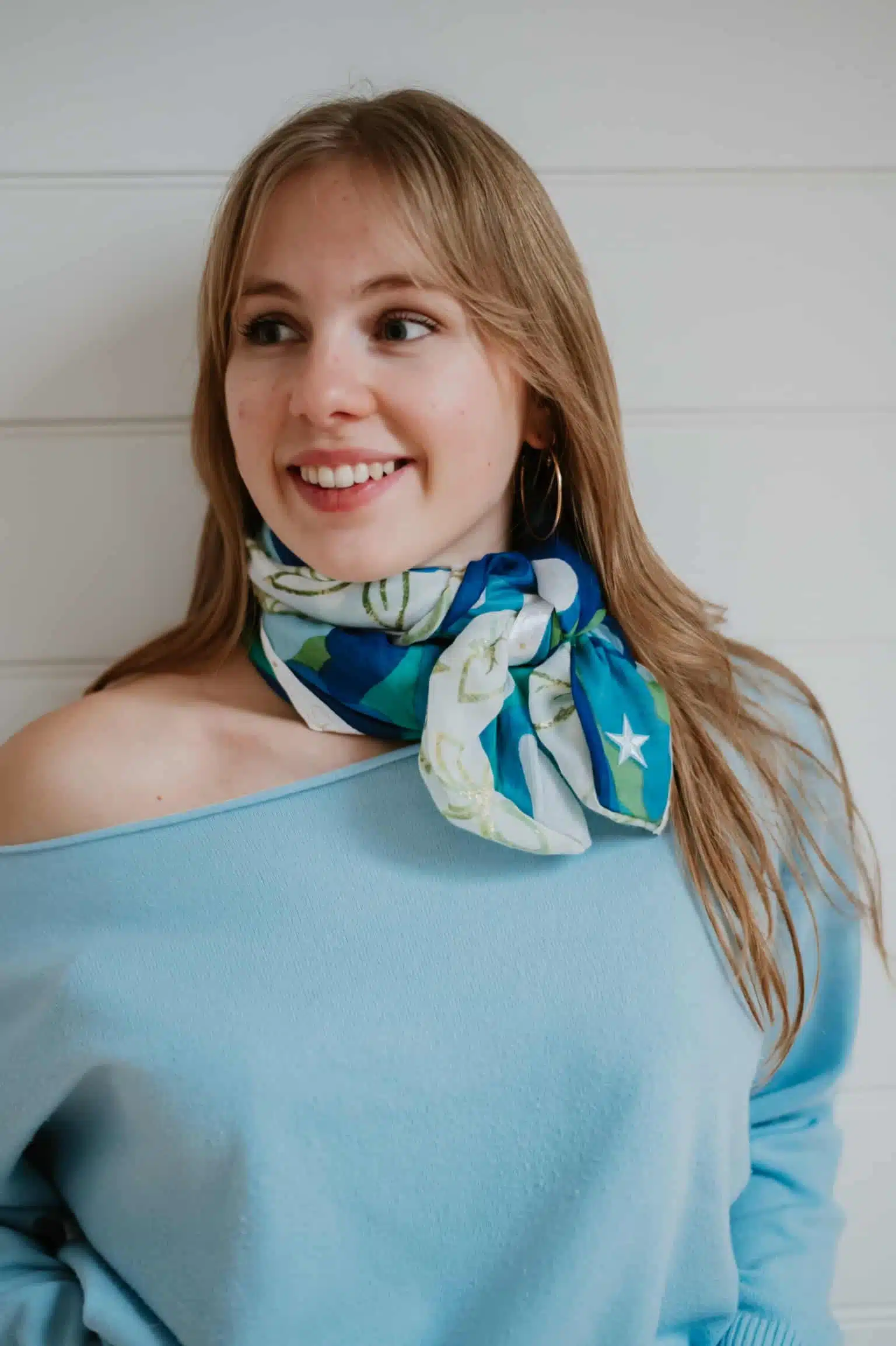 80,00€Le foulard Shanna est un assemblage de 4 morceaux de tissus différents, agrémenté de rubans décoratifs et assortis.