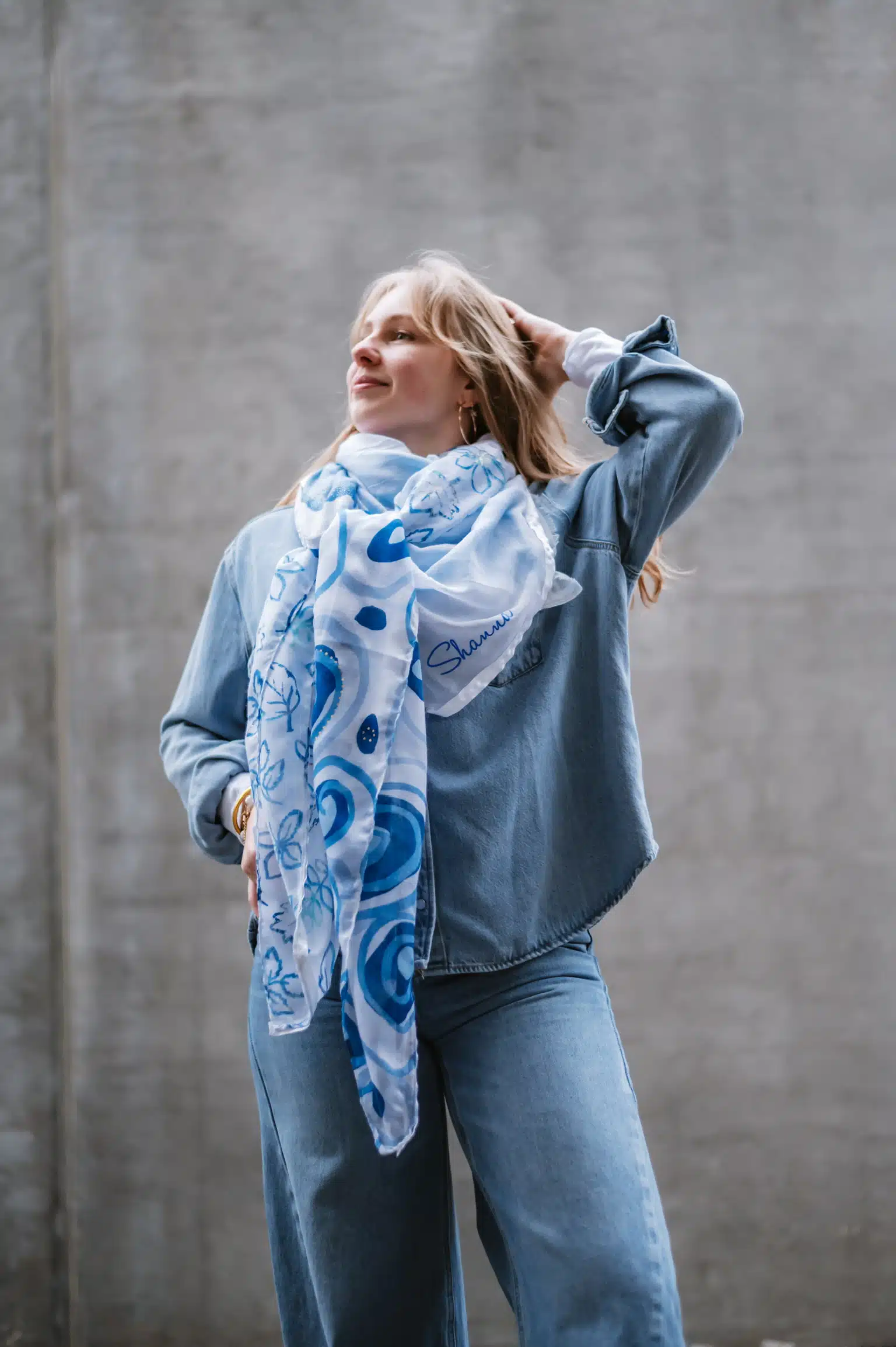 80,00€Le foulard Shanna est un assemblage de 4 morceaux de tissus différents, agrémenté de rubans décoratifs et assortis.