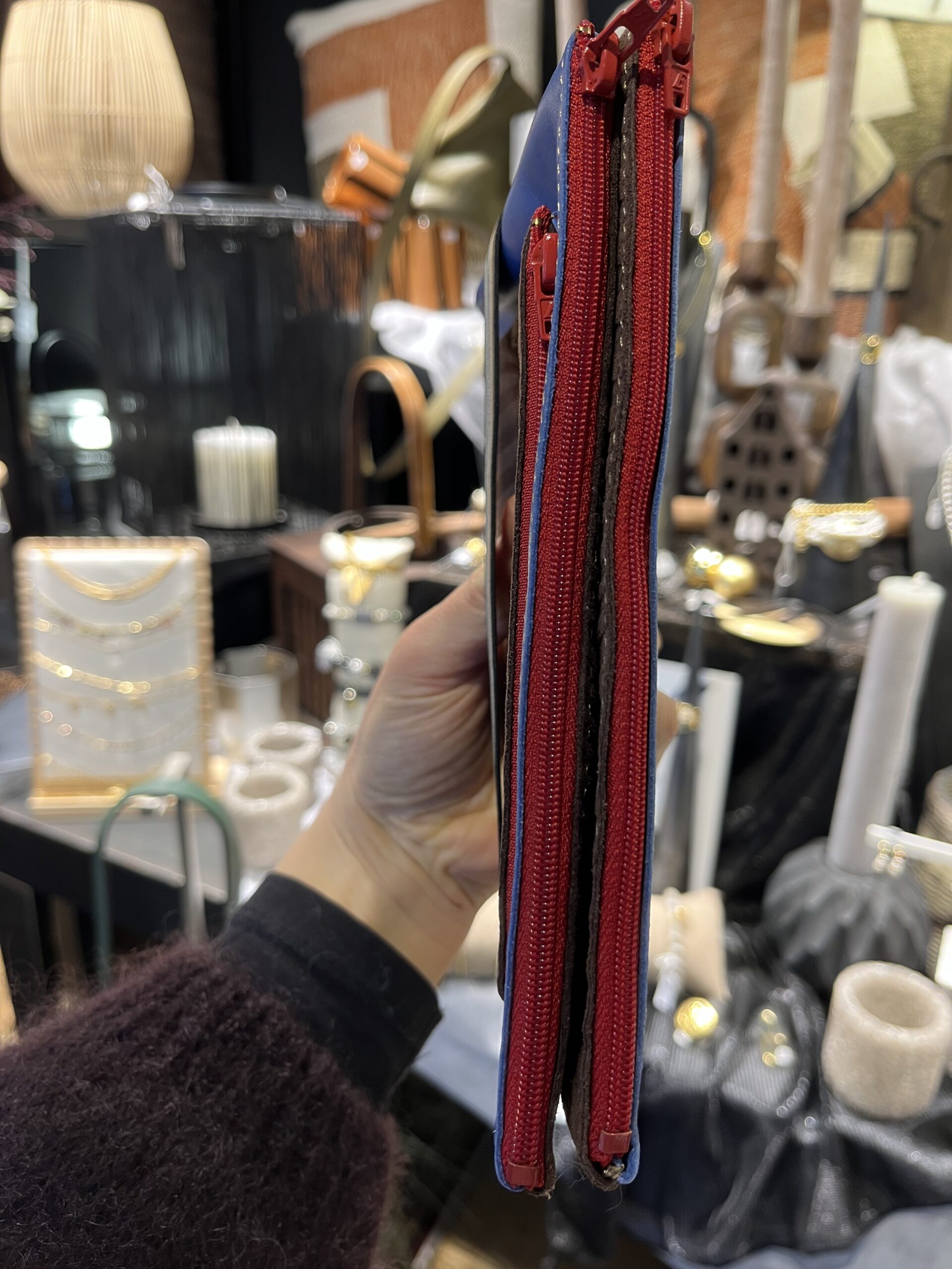 Agencement : 2 poches zippées + 3 emplacements pour cartes