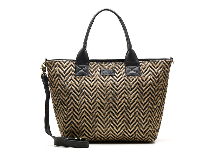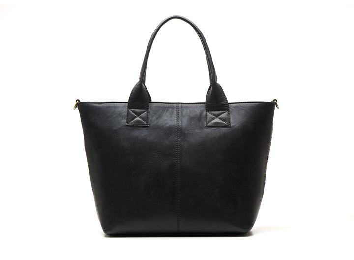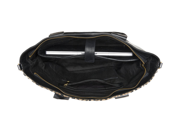 - Couleur : Jacquard caramel/noir avec dos en cuir